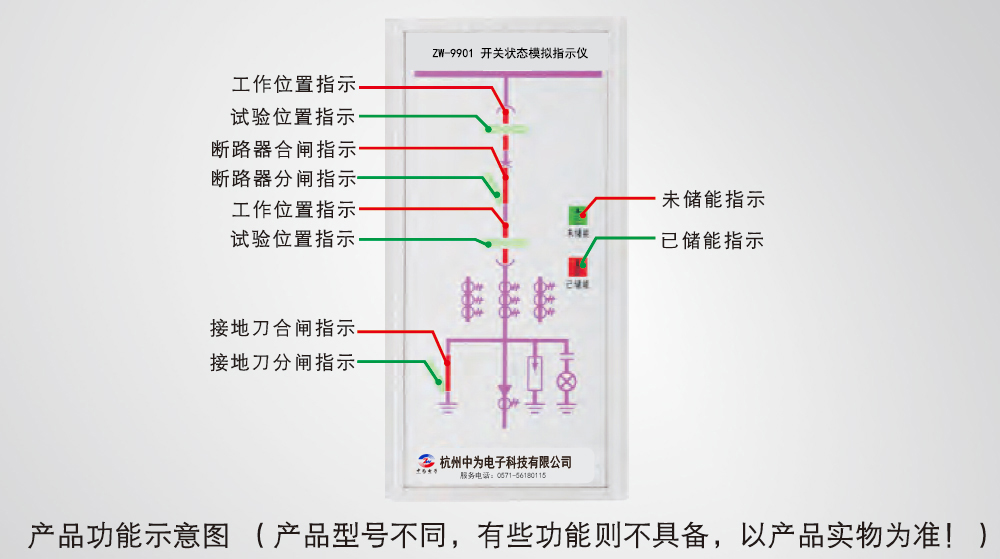工作位置觸點閉合時,紅色垂直模擬條點亮,顯示斷路器位于工作位置;試驗位置觸點閉合時,綠色水平模擬條點亮,顯示斷路器位于試驗位置。