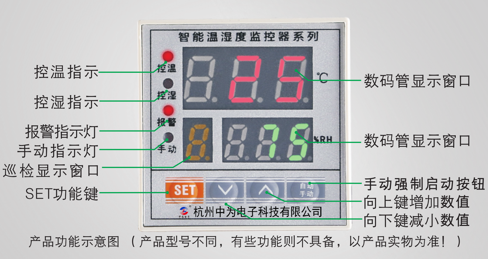 3.除濕型:當(dāng)測(cè)量濕度值大于設(shè)置濕度時(shí),啟動(dòng)除濕負(fù)載,當(dāng)測(cè)量濕度小于